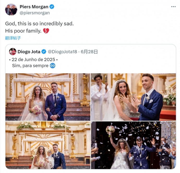更遗憾的是,他刚刚步入婚姻的殿堂享受幸福之美,他还有那么可爱的孩子等待着他的陪伴。社媒上最后发布内容,仍然是他与妻子的教堂合影,也许,他们彼此向对方宣誓的祝词,仍然半空中回荡…