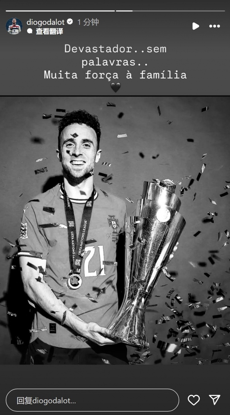 6月的欧国联之战,若塔替补登场,葡萄牙成功战胜对手拿下奖杯。这也是他生涯里的最后一冠。