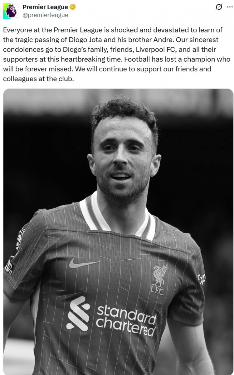 世俱杯开打后引发了不少话题,比如曼城被新月绝杀,国米爆冷出局内讧不停,皇马拜仁等豪门晋级之路起起伏伏等等。可就在这空档,就在五大联赛结束后,本该休息的间歇季,突然传来的噩耗令每一个足球迷心碎。利物浦28岁的主力边锋迪奥戈-若塔因车祸去世,跟他同行的还有亲弟弟。